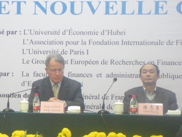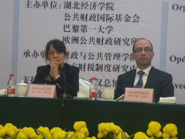 Junpei WU, Professeur et ancien vice-président à l’Université de Wuhan, a abordé l’impact de la pression fiscale en Chine sur l’effectivité des réformes. Marie-Christine Esclassan, Professeur à l’Université Paris 1 Panthéon-Sorbonne, Secrétaire générale de FONDAFIP, a présenté dans un premier temps les aspects clefs de la réforme de la comptabilité de l’Etat en France, et dans un second temps, les grands enjeux et les grands problèmes qu’elle pose : pertinence des normes comptables, certification des comptes... Canming YANG, Professeur et vice-président à l’Université de Zhongnan d’Economie et de Droit (Wuhan) a exposé une approche critique du keynésianisme et donné les raisons pour lesquelles un tel modèle est difficilement applicable à la Chine.