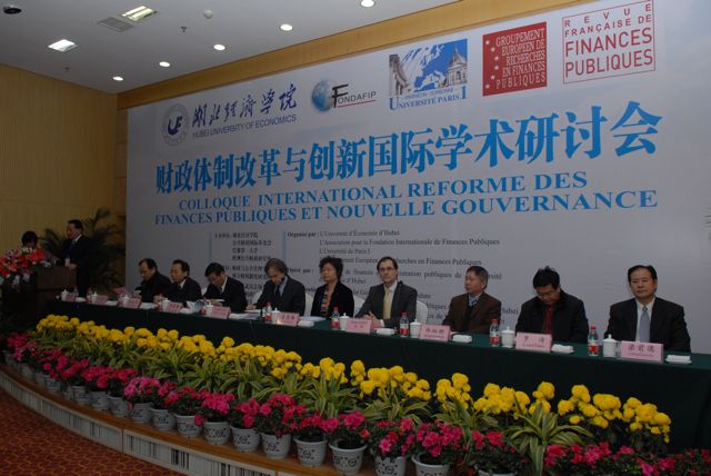 Dans leurs allocutions d’ouverture, Zhongmei LU, Présidente de l’Université d’Hubei et Hui LUO, vice-directeur du Comité permanent de l’Assemblée populaire de la province d’Hubei se sont félicité de l’organisation d’un colloque d’une telle ampleur. En effet, les échanges entre la France et la Chine ne peuvent être que riches d’enseignement et porteurs de réformes. Serge LAVROFF, Consul général de France à Wuhan s’est réjoui du développement des relations franco-chinoises dans le domaine de la recherche universitaire. Michel BOUVIER, Professeur à l’Université Paris 1 Panthéon-Sorbonne, Président de FONDAFIP, a souligné que ce colloque dans lequel étaient représentés tous les continents , avec des universitaires, des chercheurs et des praticiens de différents pays , illustrait pleinement ce qu’est FONDAFIP, à savoir un centre de recherche international en matière de gouvernance financière publique. Michel Bouvier a indiqué son intention de développer activement ce partenariat avec la Chine qui se situe dans la droite ligne des activités scientifiques de FONDAFIP.